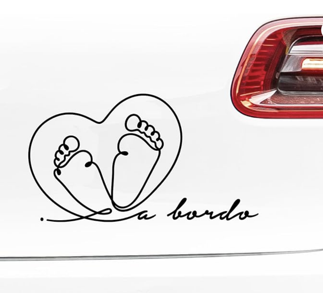 I love baby on board by N.I.Edit.H. Delicado trazo abstracto que fusiona corazón, pies de bebé y texto “a bordo”. Sticker estético e informativo advirtiendo a demás conductores la presencia de niños en el vehículo. Perfecto para personalizar su coche, furgoneta, detalle en la puerta de habitación, regalo cumpleaños, día de la madre-padre, embarazo, nacimiento.
